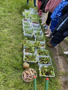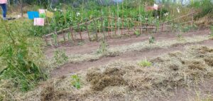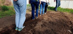 Eltern und Lehrer lernten bei diesem Workshop die Techniken des Umgrabens und Mulchens, wie man Beete und Wege anlegt, Pflänzchen setzt, Kartoffeln legt und das Ausbringen von Saatgut.