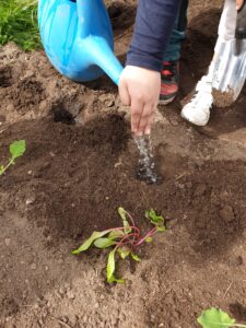 Die Kinder erfahren unmittelbar, wie aus einem Samenkorn eine knackige Möhre wird. Sie übernehmen gemeinsam Verantwortung für ihren Acker und verstehen, welche Wirkung ihr Handeln hat. Auf dem Acker begreifen sie natürliche Zusammenhänge, blicken über den eigenen Tellerrand und erforschen aktiv ihre natürliche Umgebung. Das Ziel: eine junge Generation für Natur und Nachhaltigkeit begeistern!“ Quelle und Link: GemüseAckerdemie